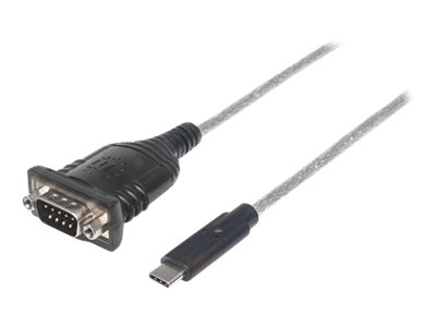 Manhattan Usb-C To Serial Converter, Male To Male, Usb-C To Serial/Rs232/Com/Db9 Port, Prolific Pl-2303Ra Chip, Cable 45Cm, Silver/Black, Polybag - Seriell Adapter - Usb-C - Rs-232 X 1