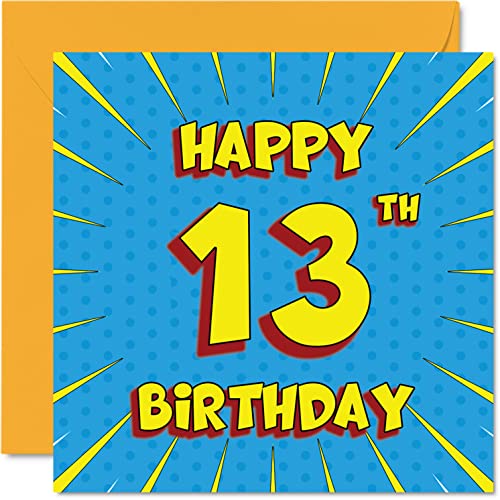 Roliga 13-årsfödelsedagskort för pojkar flickor – serietidning – grattis på födelsedagskort för syster barnbarn son dotter bror kusin brorson brorsdotter, 145 mm x 145 mm gratulationskort, 13:e