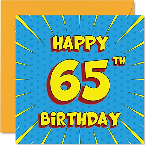Roliga 65:e födelsedagskort för män kvinnor – serietidning – grattis på födelsedagskort för barnflickor mormor pappa mamma farfar kusin faster farbror, 145 mm x 145 mm gratulationskort, 65:e