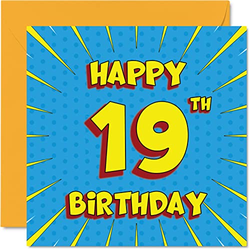 Roliga 19:e födelsedagskort för män kvinnor – serietidning – grattis på födelsedagskort för syster barnbarn son dotter bror kusin brorson brorsdotter, 145 mm x 145 mm gratulationskort, 19:e