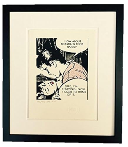 Serietidning puds kyss handgjord screentryck inramad, bomull, röd, 38 x 33 x 2,54 cm