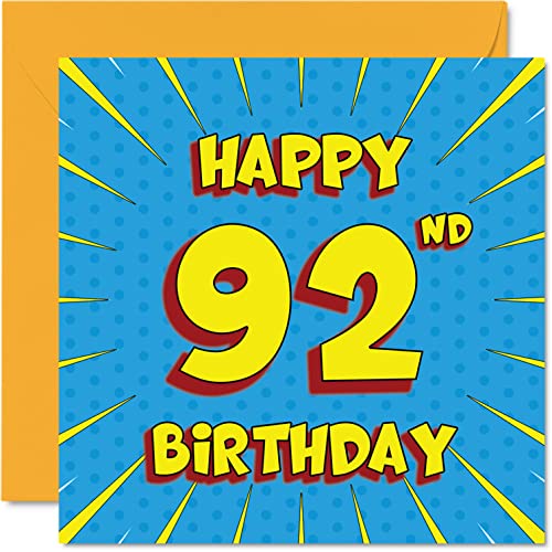 Roliga 92:a födelsedagskort för män kvinnor – serietidning – grattis på födelsedagskort för mormor farfar farfar barnflicka mamma pappa mormor, 145 mm x 145 mm gratulationskort, 92:a födelsedagskort