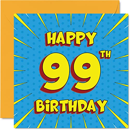 Roliga 99:e födelsedagskort för män kvinnor – serietidning – grattis på födelsedagskort för mormor farfar farfar barnflicka mamma pappa farmor, 145 mm x 145 mm gratulationskort, 99:e födelsedagskort