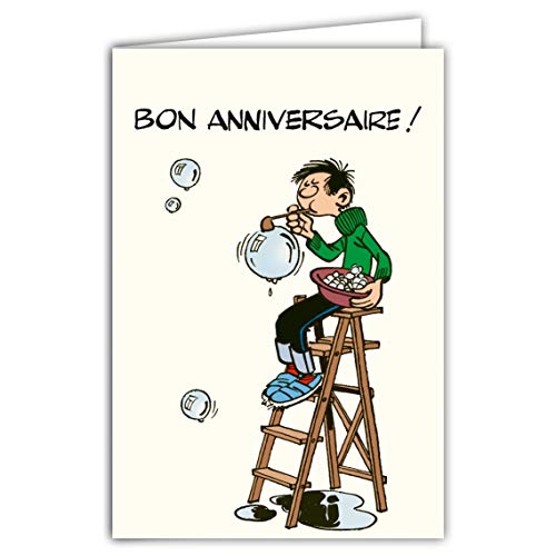 Afie GLCT-0187 Grattis på födelsedagen gaston Lagaffe vintage ursprung tvålbubblor serietidning humoristisk humor belgisk karaktär skämt haj franquin