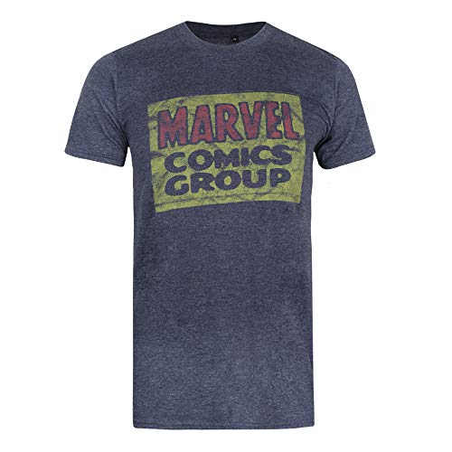 Marvel Herr serietidning grupp logo T-shirt MED, blå (Heather Navy HNY), Medium (storlek: Medium)