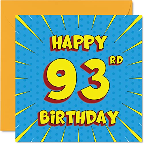Roliga 93:e födelsedagskort för män kvinnor – serietidning – grattis på födelsedagskort för mormor farfar farfar barnflicka mamma pappa mormor, 145 mm x 145 mm gratulationskort, 93:e födelsedagskort