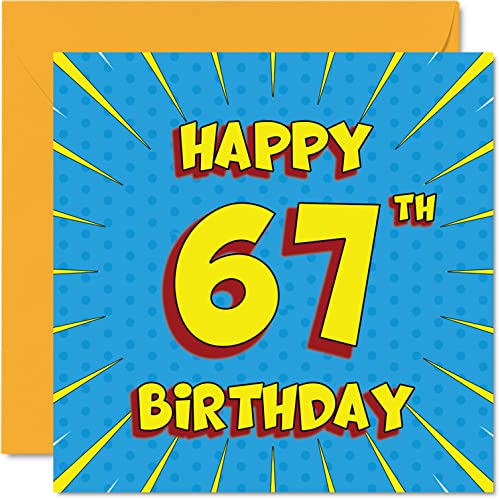 Roliga 67:e födelsedagskort för män kvinnor – serietidning – grattis på födelsedagskort för mormor mormor mormor pappa mamma farfar kusin faster farbror, 145 mm x 145 mm gratulationskort, 67:e