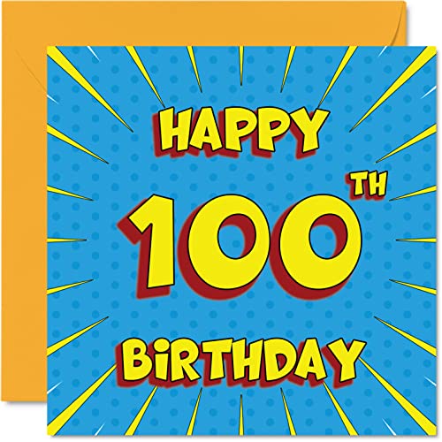 Roliga 100:e födelsedagskort för män kvinnor – serietidning – grattis på födelsedagskort för mormor farfar farfar barnvrig mamma pappa mormor, 145 mm x 145 mm gratulationskort, 100:e födelsedagskort