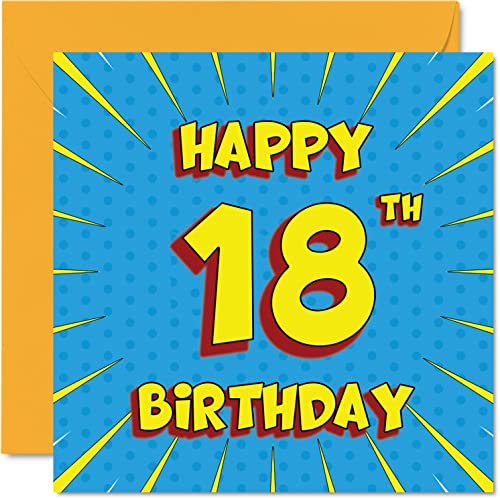 Roliga 18:e födelsedagskort för män kvinnor – serietidning – grattis på födelsedagskort för syster barnbarn son dotter bror kusin brorson brorsdotter, 145 mm x 145 mm gratulationskort, 18:e