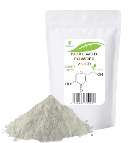 Kojic Acid Powder - 25 Gr - kan införlivas i hudvårdsformuleringar utformade för att ljusa upp hudtonen, fuktkrämer, krämer, lotioner, geler, vätskor, serum, tvålar