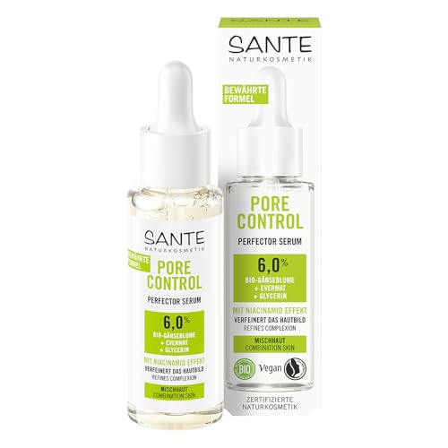 SANTE Naturkosmetik-serum med ekologisk gåsblomma och niacinamideffekt, ansiktsserum för en jämn hy och raffinerade porer, porkontroll Perfector Serum, 30 ml