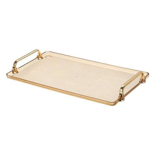 PATIKIL Serveringsbricka i plast med gyllene handtag, 40 cm x 22 cm modern rektangulär dekorativ bricka smyckesfat för bänkskiva, badrum, kök, bärnsten