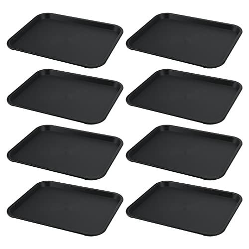 MUKCHAP 8-pack svarta snabbmatbrickor, 35 x 27 cm rektangulär serveringsbricka i plast, dryckesbrickor i plast för café, restauranger, cafeteria