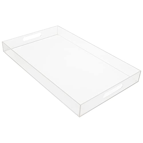 Kurtzy Klar Akryl Plast Serveringsbricka med Handtag – L50 x B30 cm – Extra Stor, Rektangulär & Spillsäker – Dekorativ Frukost, Té/Kaffe, Mat, Dricka & Bordorganisatör