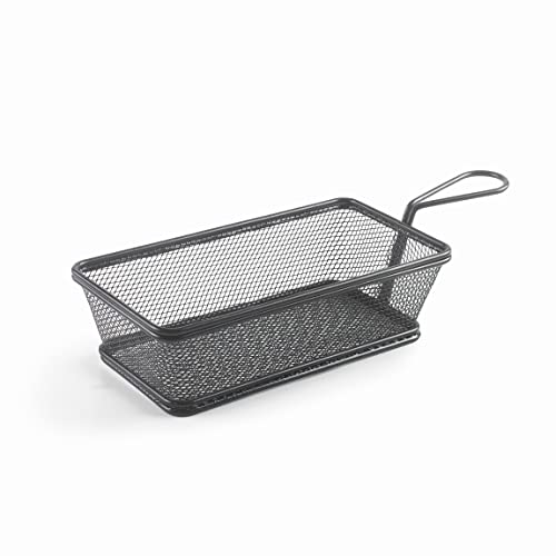 Lacor - 61154 Black Snacks Serveringskorg, Rektangulär Korg, Chipskorg, Rostfritt Stål Korg, Ej lämplig för stekning, 21 x 11 x 6 cm, matt svart finish