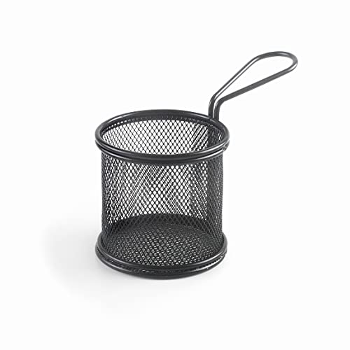 Lacor - 61150 Black Snacks Serveringskorg, Rund Korg, Chipskorg, Rostfritt Stål Korg, Ej lämplig för stekning, 9 x 8 cm, matt svart finish