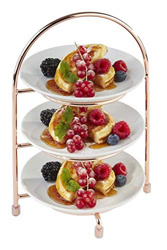 LAUCHUH Serveringsställ i porslin med 3 nivåer, serveringsbrickor med hopfällbart stabilare ställ, serveringsfat och fat för mors dag, jul, underhållning, guld, 30 cm.
