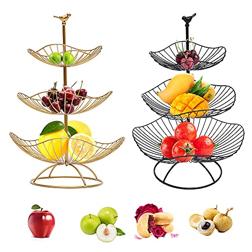 3 våningar serveringstallrik dessert kaka fruktskål fruktkorg metall fruktkorg hylla fest serveringsställ för efterrätt och frukt (guld)