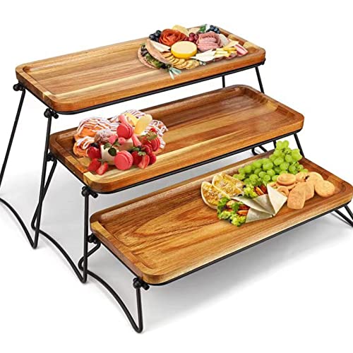 Serveringsställ I 3 Våningar Trä Middag Serveringsfat Stor Skärm Med Serveringsfat Till Förrätt Snack Fruktkopp Tårtdessert(trä)
