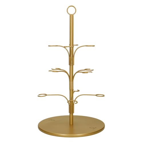 Relaxdays våningar, glas och järn, H x D: 34 x 25 cm, runt serveringsställ, 3 våningar, cupcake-stativ, transparent/guld