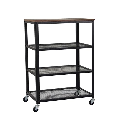 Relaxdays rullvagn, 4 hyllor, industri, kök och vardagsrum, HWD: 85 x 60 x 40 cm, mobil serveringsvagn, svart/brun
