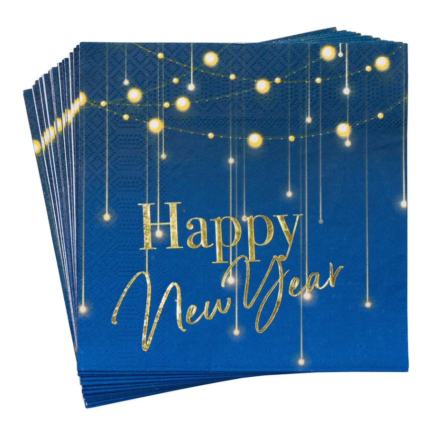20 servetter Happy New Year nyårsafton nyår som bordsdekoration för årsbytet. Servetter svart guld perfekt för fest 33 x 33 cm