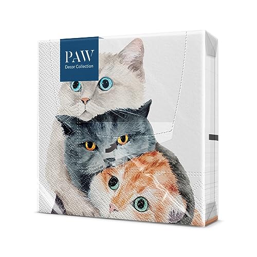 PAW Servetter Papper 3 lager - 33 x 33 cm. 20 st. Tryckt med vattenbaserat bläck. Katter, djur. Perfekt för födelsedagsfester, trädgårdsgrillar, fester med vänner.