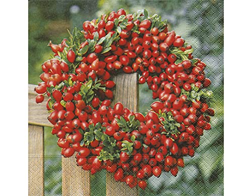 Servetter papper Rosehip wreath 33x33cm. 20u.
