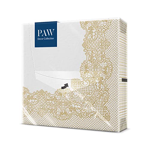 PAW Servetter Papper 3 lager - 33 x 33 cm. 20 st. Tryckt med vattenbaserat bläck. Verklig spets - guld. Lyxig Den perfekta bordsdekorationen för viktiga tillfällen.