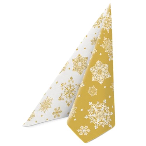 PAW - Airlaid servetter (40 x 40 cm) I 50 stycken I Perfekt för vinter, jul, fester I Högkvalitativa Bordsdekorationstygservetter I Servetter Tyg I Snöflingor Guld