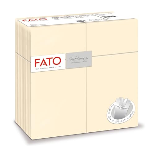 Fato Servetter av torrpapper, Airlaid, med bestickficka, Tyg effekt, 50 servetter i storlek 40 x 40, Ivory färg