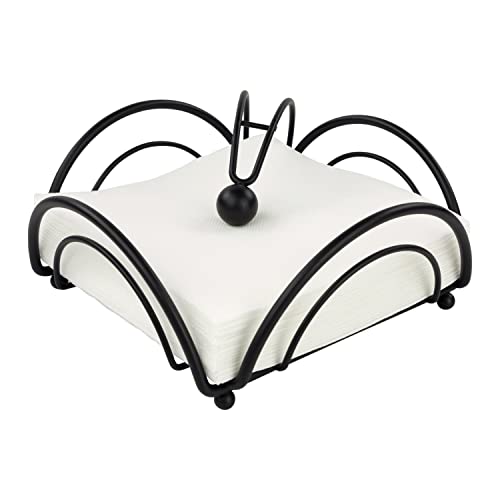 WENKO Servetthållare Baco, hållare för alla vanliga servetter, perfekt för pappersservetter i olika dekorationer, tillverkad av pulverlackerad metall i svart, 15 x 12,5 x 4 cm