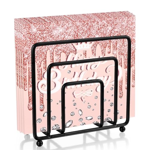 Vertikal servetthållare i järn – fristående servetthållare för arbetsbänk och köksbord, perfekt för festdekoration (svart)