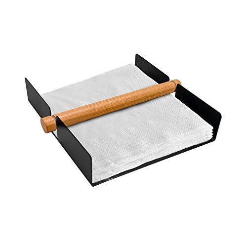 Servetthållare av metall och trä brun servettdispenser för bord kökstillbehör – restaurangdekoration, bartillbehör och dekoration (svart)