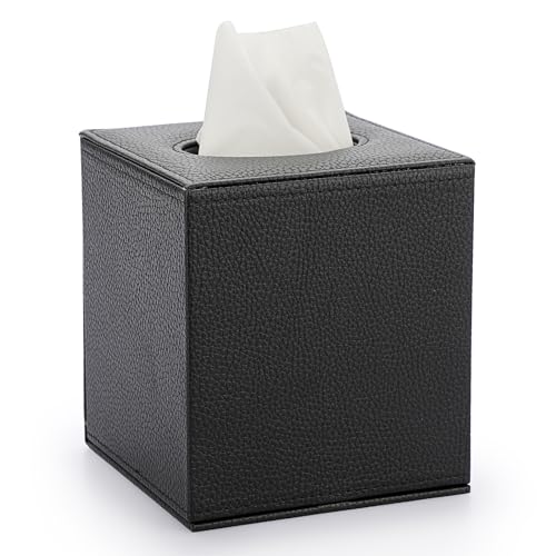 BTSKY PU läder kub näsdukshållare låda - hushåll/kontor fyrkantig näsdukslåda fodral, texturerad näsdukslåda fodral servetthållare, svart