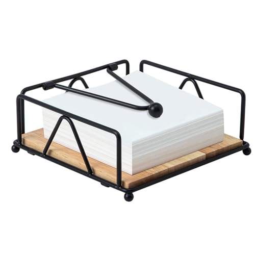 Servetthållare svart trä, med viktad spännarm – servetthållare trä, servettställ bord vintage, vattentät, rostbeständig för kök restaurang (18 x 18 x 7 cm)