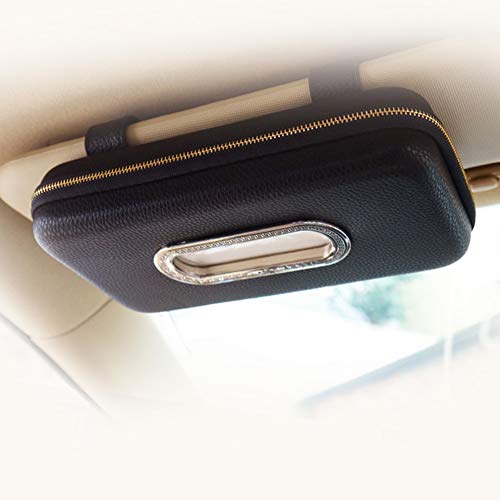 Cartisen Bil näsdukshållare, solskydd servetthållare, bilvisir näsdukshållare, lyxig PU-läder baksäte näsdukshållare (svart)