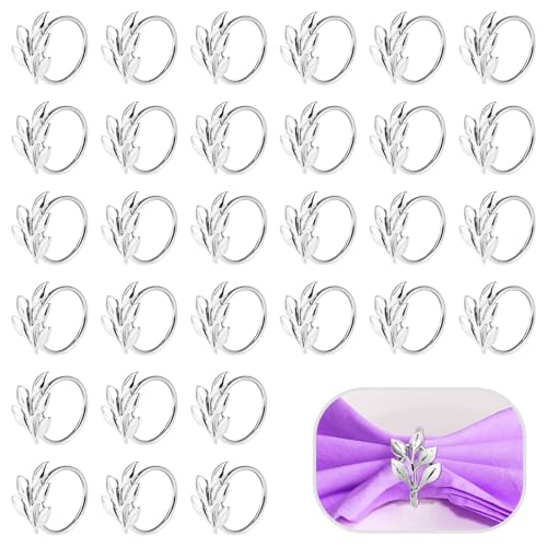 Oungy 30 stycken blad servettringar silver, metall servettringar set 35 mm, eleganta servettringar påsk, servetter ringar för fester, banketter och middagar (1,4 tum)