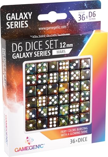Gamegenic - Galaxy Series - Mars - set med 36 tärningar från 6–12 mm - brädspel - brädspel - kortspel - tärningsspel - tillbehör och tillbehör för brädspel
