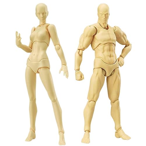 Body Kun Doll, konstnärsdocka blockhuvud fogade skyltdocka ritningsfigurer för figurmodell man + kvinna set (hudfärg)