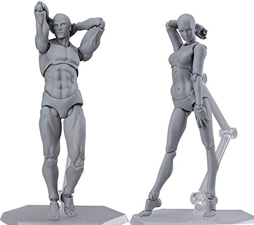AXITWXIT Skyltdocka figur ritning tillbehör ritverktyg, skyltdocka för konstnärer ritningsfigurer modell för skissning, målning, konstnärer man + kvinna set (grå)