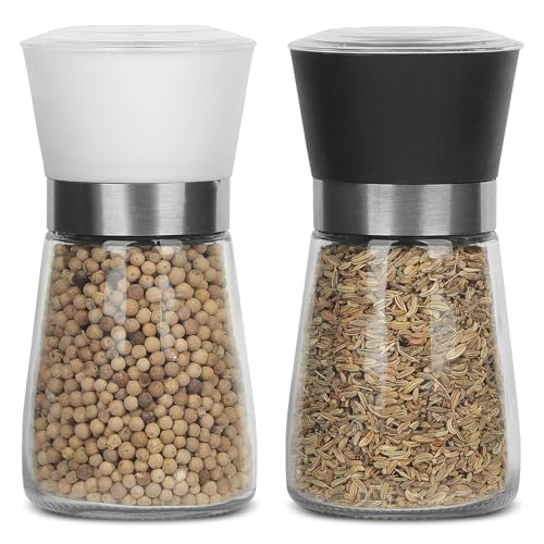 Salt och pepparkvarnar svart vitt set, justerbar keramisk kvarn kryddkvarn, pepparströare, kvarn saltströare, kryddkvarn, pepparkvarn liten, minikryddkvarn, saltkvarn för grovt salt