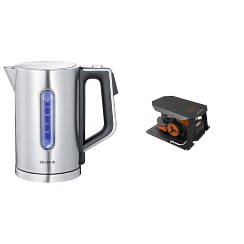 Severin WK 3418 Vattenkokare & SEVERIN Automatisk brödrost med långa springor, brödrost med bulleinfästning, brödrost i rostfritt stål med stora rostningsrum, rostfritt stål borstat/svart, AT 2509