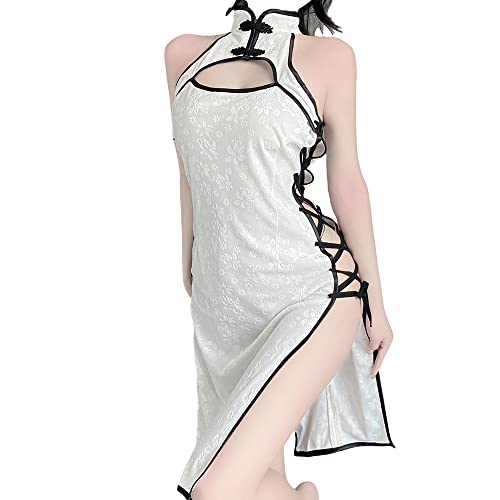 SINGUYUN Kinesiska traditionella Hanfu klänningar för kvinnor sexig cosplay cheongsam klänning anime underkläder kimono pyjamas nattkläder, 8527 Svartvit, one size