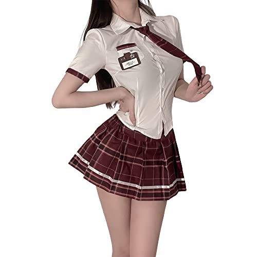 Temptshow Japansk kvinnlig student JK veckad kjol cosplay anime jumpsuit sexig snäv pyjamas U, Getaway Solids, One Size