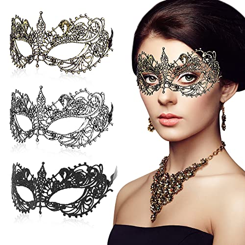 Sibba Maskeradmasker 3 st spets venetianska masker för kvinnor sexig ansiktsmask dam flicka spets ögon mask bröllop fin klänning maskerad boll jul halloween karneval kostym fest kväll bal flerfärgad