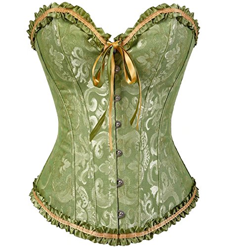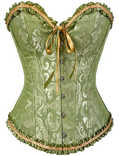 SHYMMUO Snörningskorsett för kvinnor topp satin blommig benad överbyst kroppsformare bustier sexig midja push-up shapewear underkläder .., gRÖN, M