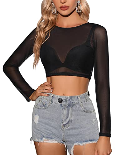 Avidlove damer basic topp sexig blus crop skjorta festival toppar rave outfit långärmad klubbkläder, svart, M