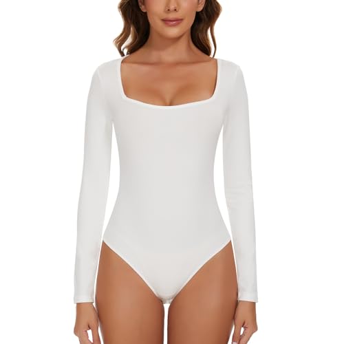 SLIMBELLE Dambody, långärmad bodysuit, elegant, sexig, långärmad body, topp, bustier, smala bodysuits toppar, bodys för kvinnor, #3S – vit, L