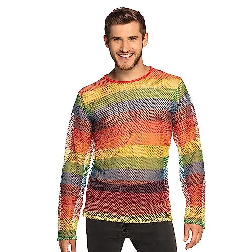 Boland - Fisknätsskjorta, storlek M/L, för kvinnor, sexig topp, disco, fest, kostym, karneval, temafest, regnbåge, M-L